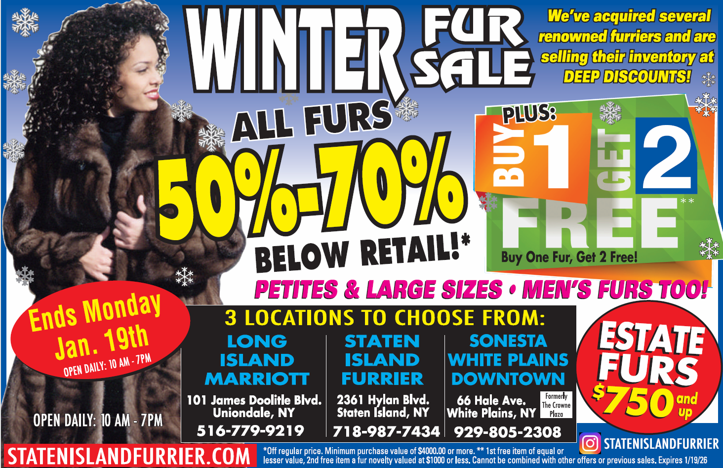 Welcome to Staten Island Furrier, serving the tri-state area for over 38 years. Whether buying new, altering or storing, it will always be our pleasure to serve you and all your fur needs now and in the future. Welcome aboard!